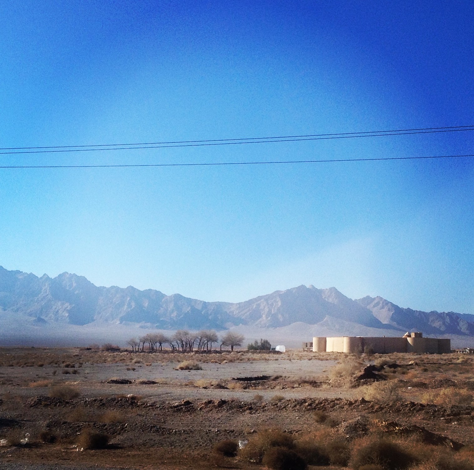 The caravanserai of Zein o din is the wow moment of day three, it stands in a desert plain between a far away chain of mountains and a far away motorway.